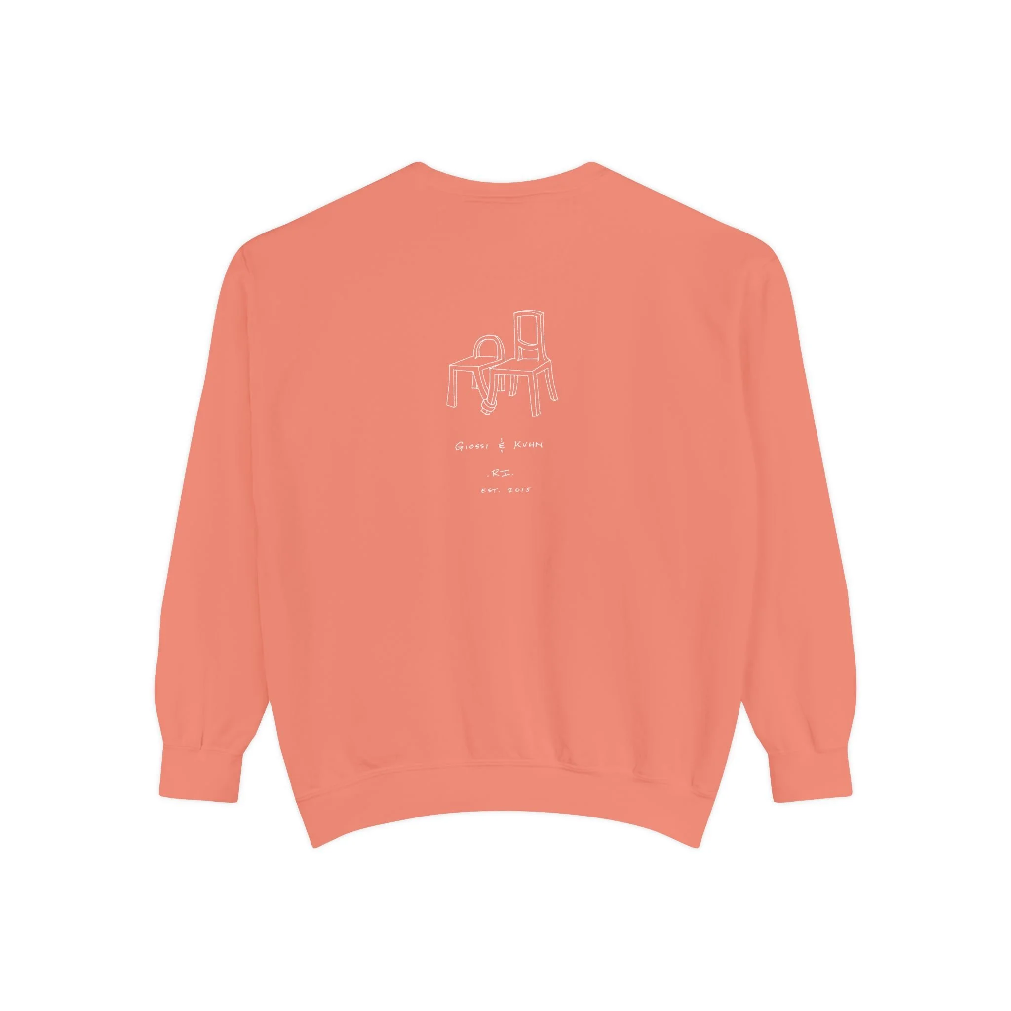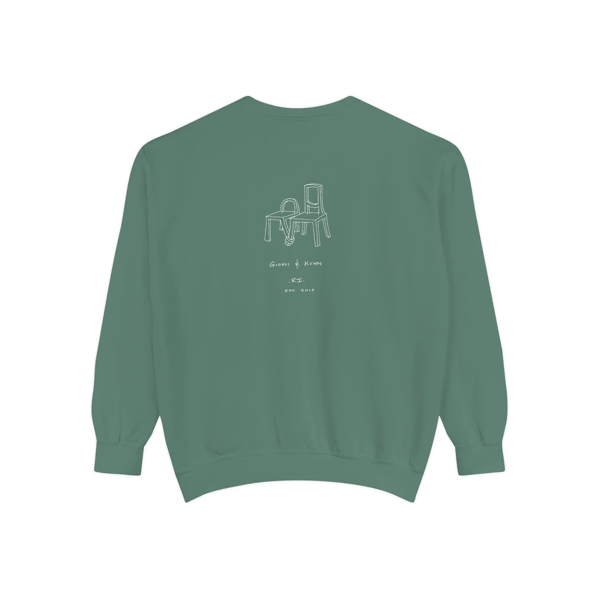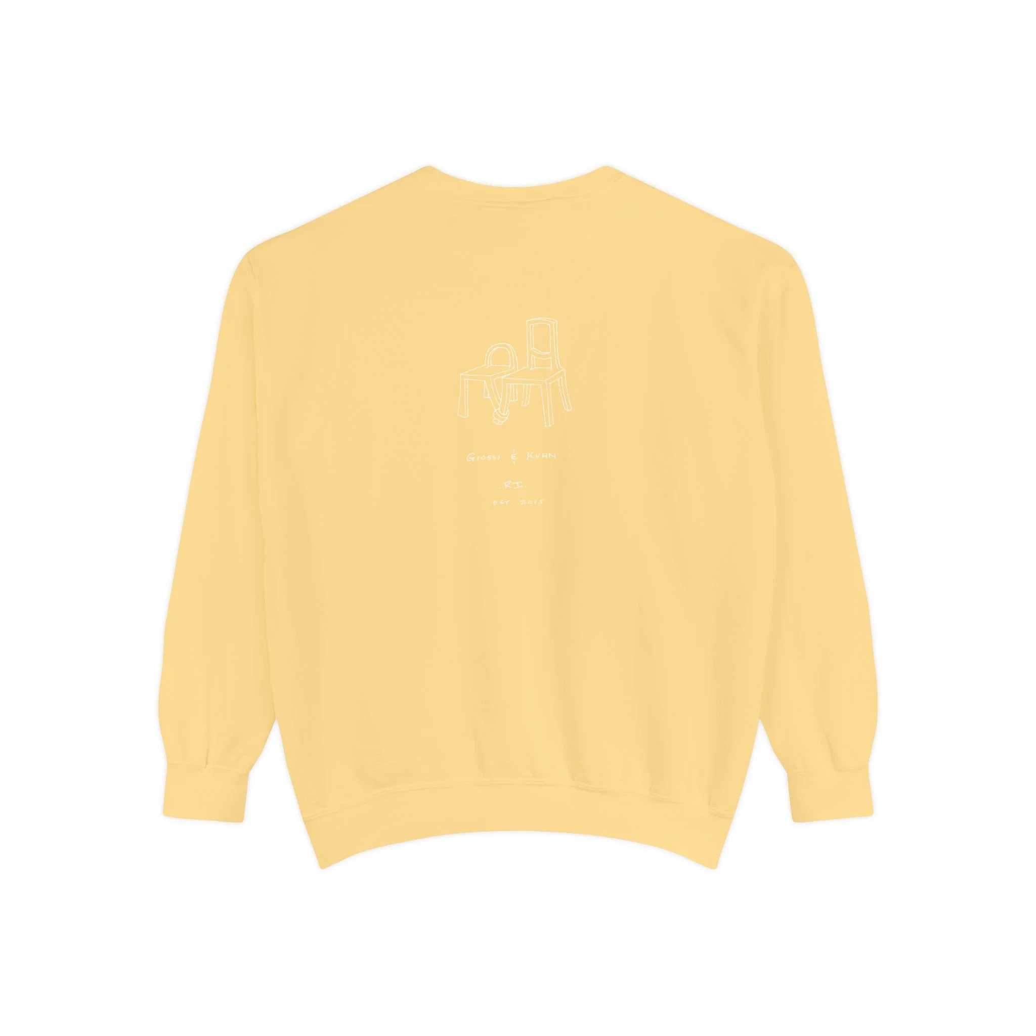 A quiet, effortless sweatshirt that feels like slipping into a favorite studio sweater. Lightweight yet substantial, the garment-dyed fabric has a lived-in softness and a relaxed drape that invites slow mornings and long creative sessions. A minimalist stitched illustration sits low on the chest — its simple linework hints at curiosity and imperfect beauty. The ribbed collar, cuffs, and hem move with you and return to shape, while the twill neck tape and half-moon back patch keep the fit comfortable and stable. Wear it during sketching afternoons, gallery visits, or when you want to bring a calm, intentional layer to a casual evening out.