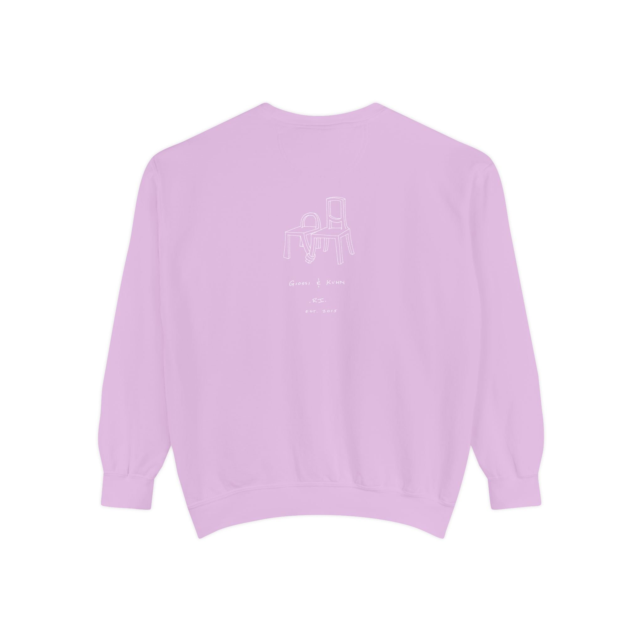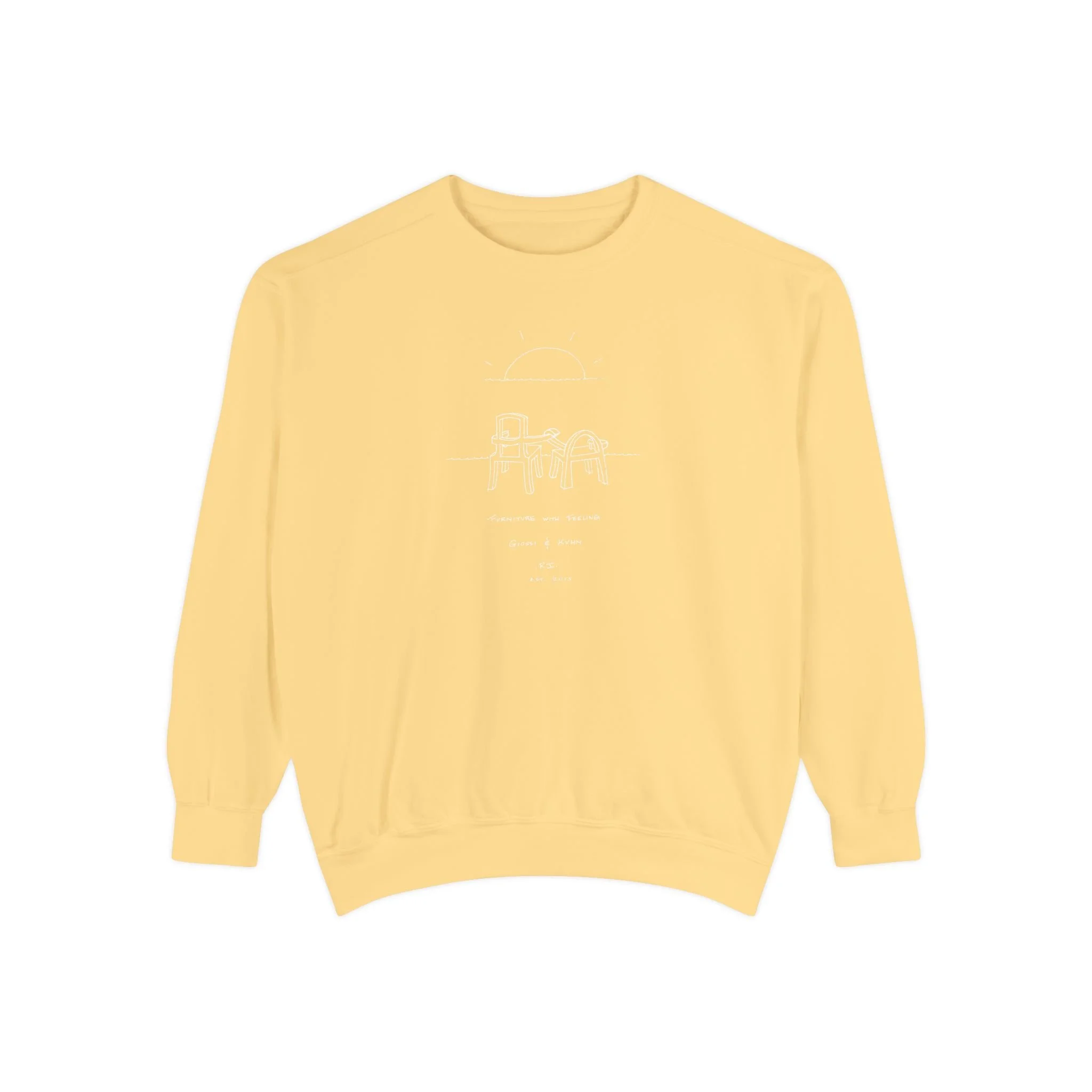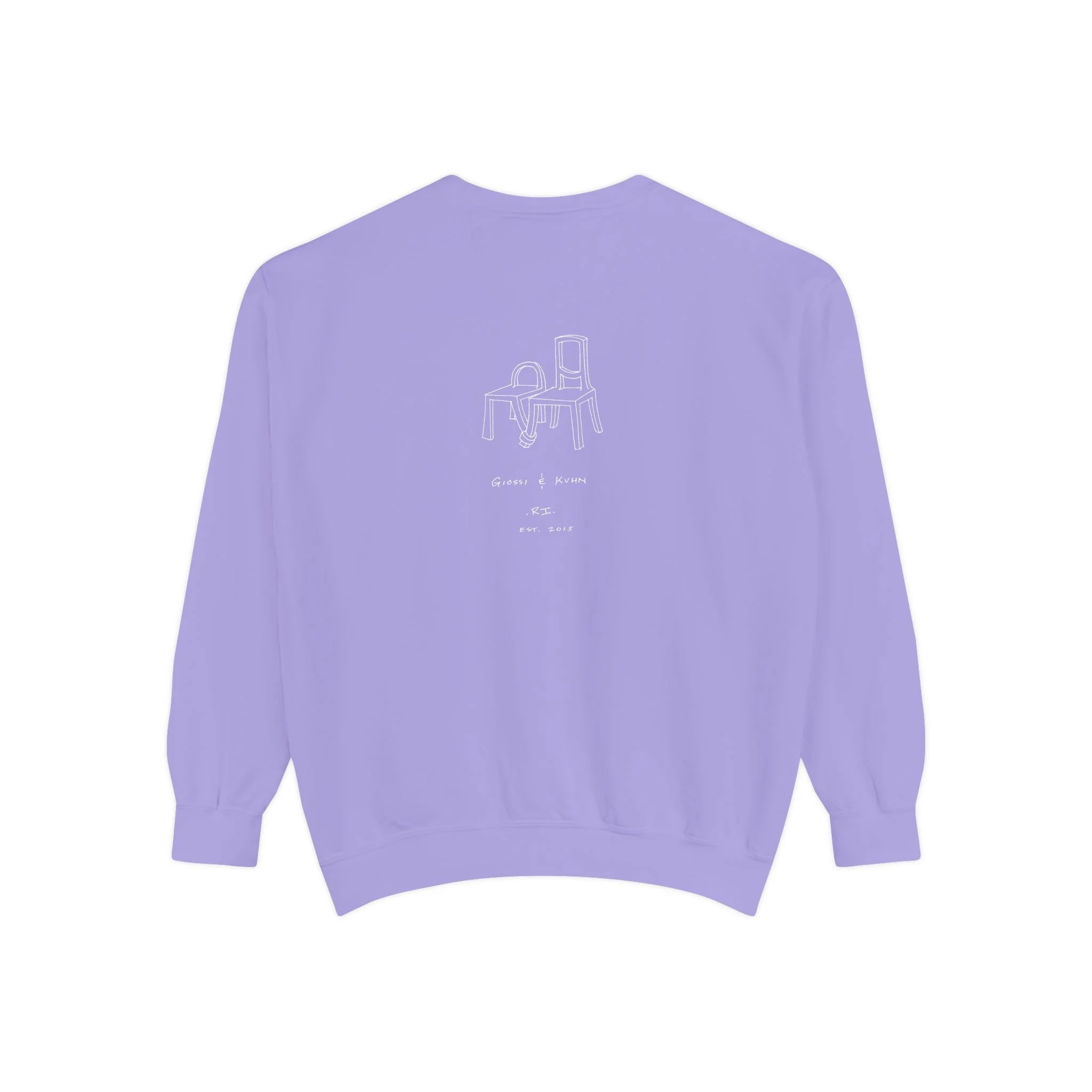 A quiet, effortless sweatshirt that feels like slipping into a favorite studio sweater. Lightweight yet substantial, the garment-dyed fabric has a lived-in softness and a relaxed drape that invites slow mornings and long creative sessions. A minimalist stitched illustration sits low on the chest — its simple linework hints at curiosity and imperfect beauty. The ribbed collar, cuffs, and hem move with you and return to shape, while the twill neck tape and half-moon back patch keep the fit comfortable and stable. Wear it during sketching afternoons, gallery visits, or when you want to bring a calm, intentional layer to a casual evening out.